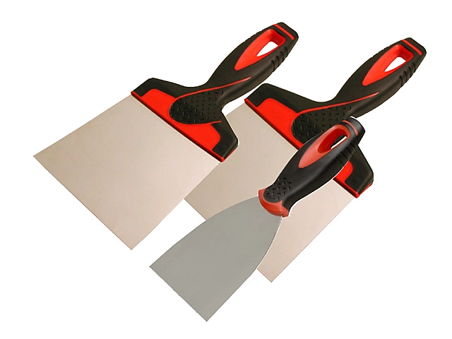 Lot de 3 couteaux à enduire inox comprenant 1 couteau à reboucher de 4 cm, 6cm et 10cm.