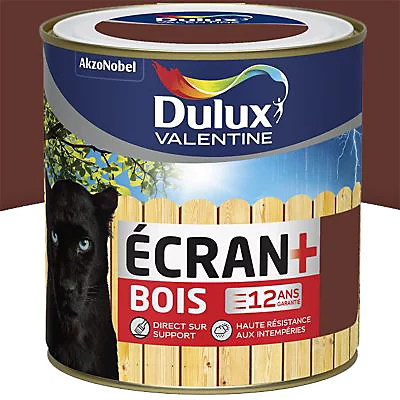 La peinture intérieur extérieure Dulux Valentine Ecran+ ton bois satin de 0,5L à destination des supports en bois possède une Formule glycéro satinée spécialement conçue pour durer longtemps, résister aux agressions des intempéries et apporter un beau résultat.