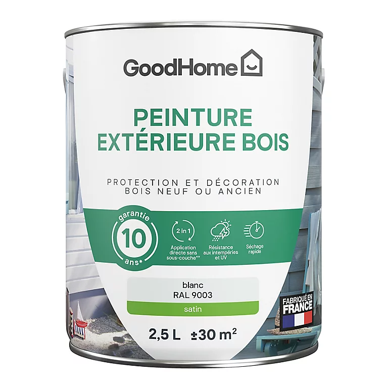 Peinture bois extérieur GoodHome blanc satin 2.5L