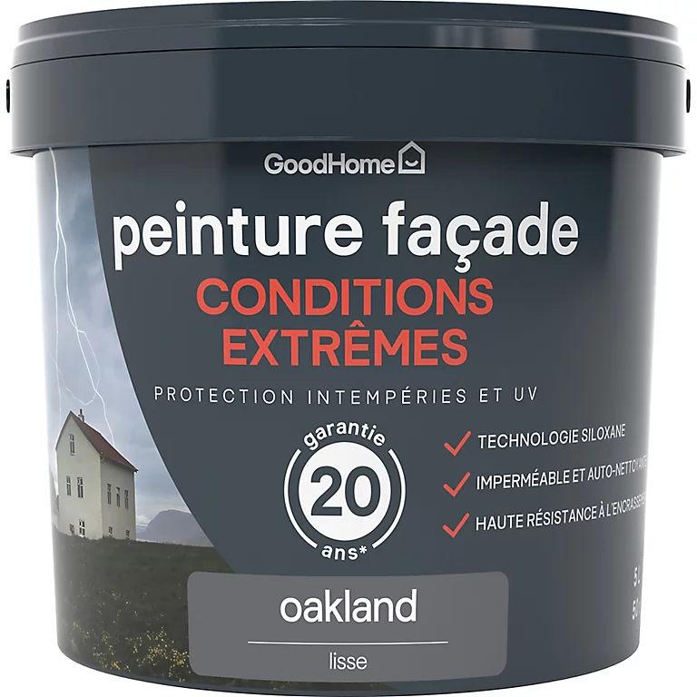 Peinture façade autonettoyante Premium GoodHome gris Oakland 5L