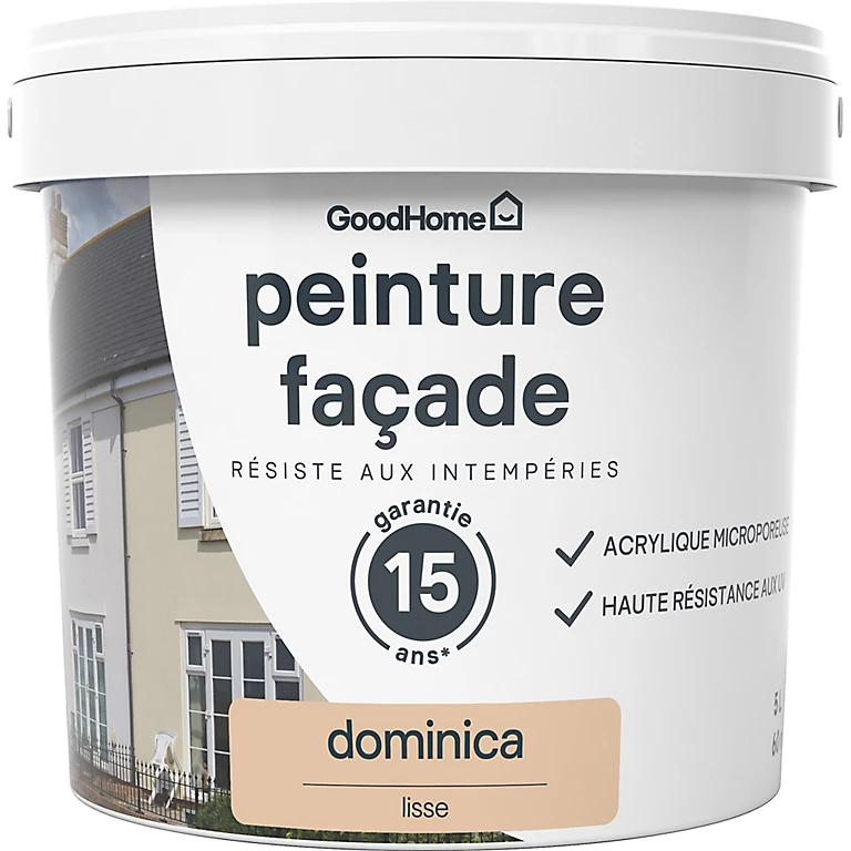 La peinture façade GoodHome Dominica est un excellent moyen d’apporter de la couleur et du caractère à votre maison. Elle empêche l’eau de pénétrer tout en laissant l’humidité s’échapper. Dotée d’un bon pouvoir couvrant, elle permet d’éviter la décoloration et d’offrir une couleur longue tenue. Tous nos produits sont résistants aux intempéries, afin de protéger vos murs extérieurs des conditions météorologiques les plus difficiles. La contenance est de 5 litres.