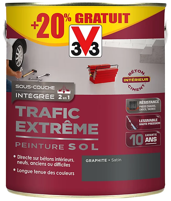 Peinture sol intérieur Trafic Extrême V33 graphite satiné 2,5L + 20% gratuit